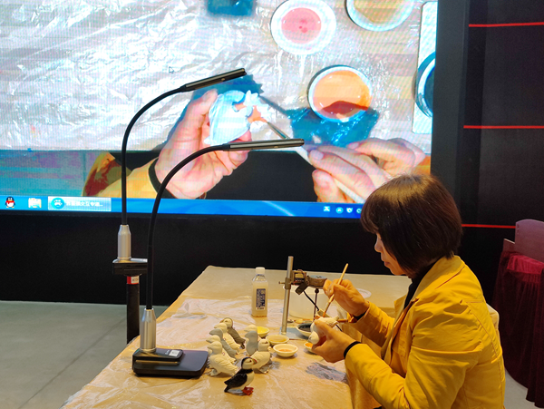 在小鎮中,非遺技藝傳承人展開了傳統技藝的教學。在陶瓷坯體上,教師耐心地勾勒著細節,不同的顏色被一點點涂抹到陶瓷上,展現出了藝術的美麗。