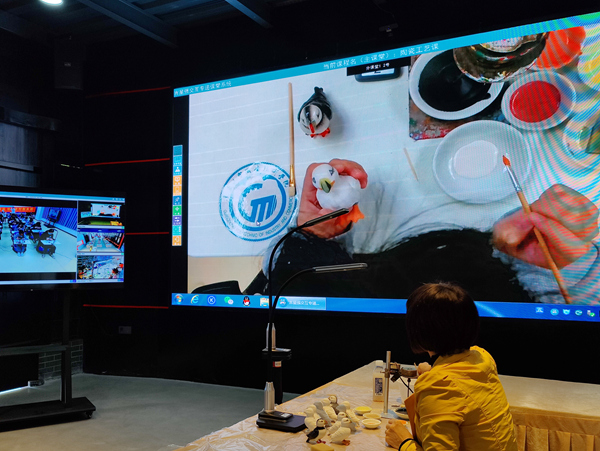 借助先進的信息技術,三個處于不同區域的地方同上一節課,陶瓷企業的員工、廣東工貿學院的學生與非遺文化傳承人實現了一場“0距離”的接觸。