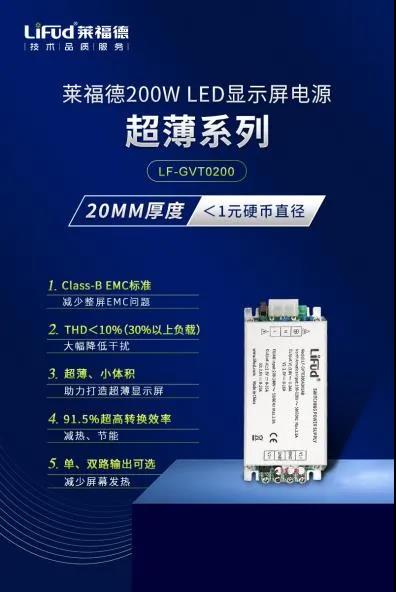 萊福德顯示屏電源重點(diǎn)新品,產(chǎn)品厚度僅為20mm,可助力廣大客戶打造超薄輕巧的顯示屏箱體,輕松實(shí)現(xiàn)壁掛貼墻安裝。