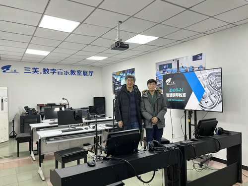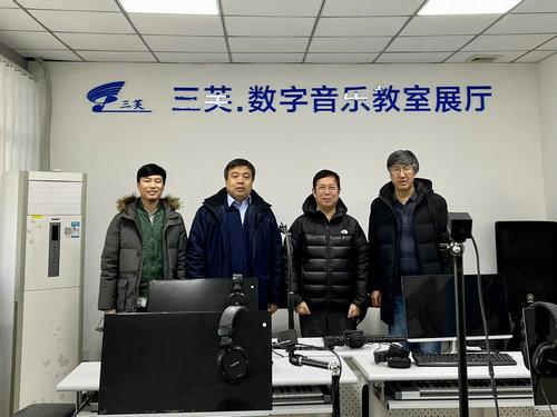 “北京鑫三芙”董事長引導北京教育裝備行業協會領導參觀了三芙數字音樂教室展廳,行協領導認真觀摩了三芙新產品的演示,對三芙扎實的研發、務實的工作作風及創新的直播模式給予高度評價。