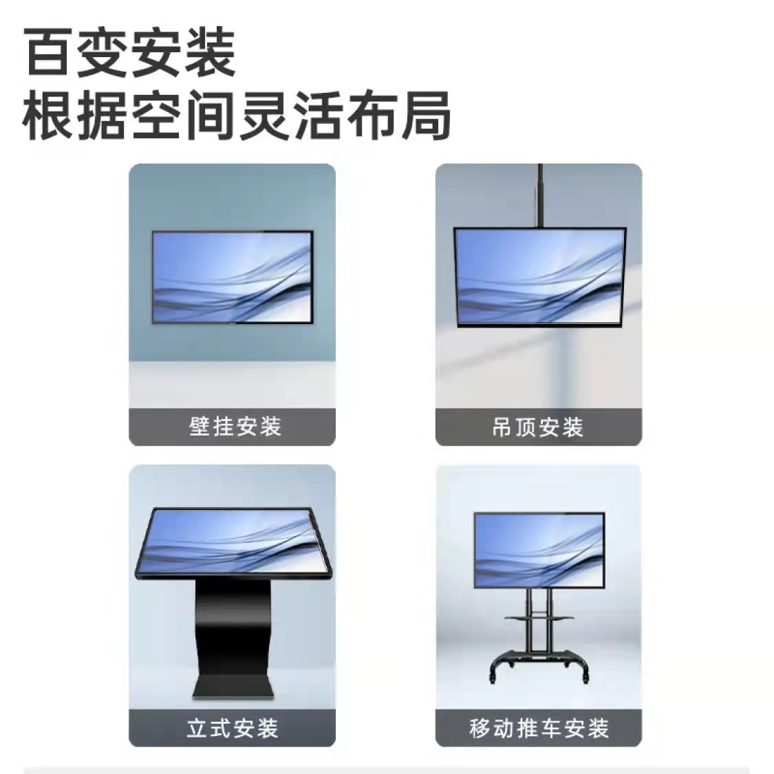 飛利浦數字標牌支持壁掛、吊裝、嵌入式、立式支架/移動推車安裝等多種安裝方式,可根據用戶自身需求,結合實際應用場景需求,來選擇更匹配、更契合的安裝方式;同時顯示界面支持0°、90°、180°、270°任意設置和切換,充分滿足更多應用場景需求。