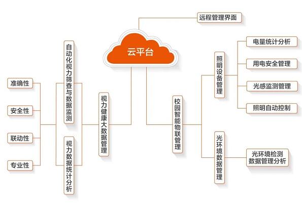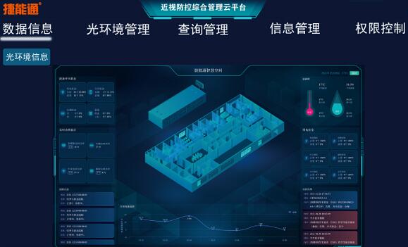 科學防控兒童青少年近視近視防控綜合管理云平臺集視力篩查數據管理、光環境數據管理、節能管理、設備自動化于一體。通過智慧物聯新技術,可遠程控制開關,自動采集測量,實時監控數據,實現兒童青少年近視防控的智能化管理。
