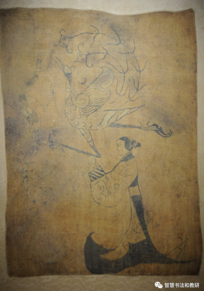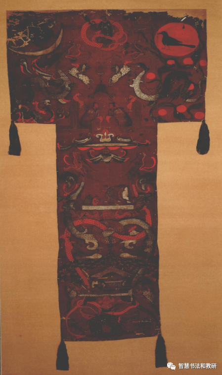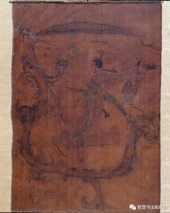 1973年在湖南戰(zhàn)國(guó)基中出土的《人物御龍帛畫》,馬王堆出土的西漢《T型帛畫》為輔證。