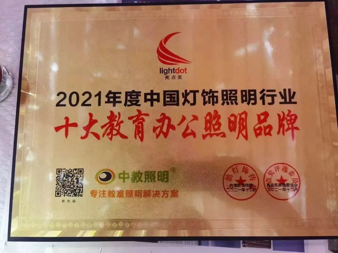 此次活動共收到上百萬次網絡投票,并經過專家層層嚴格評選,中教照明榮膺亮點獎“2021年度行業十大教育辦公照明品牌”!