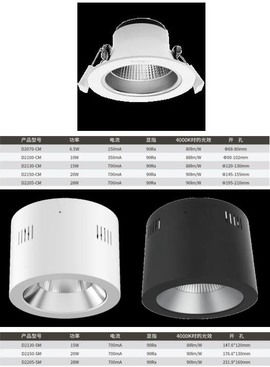 這款筒燈有嵌入式和明裝兩種款式,不管是吊頂,還是無吊頂,都可以輕松安裝。而且有40°、60°兩種光束角,可根據被照物體,選擇合適光束角。4000K/6000K兩種可選色溫,也讓宜美照明LED靈杰筒燈有了更多的發揮空間,4000K暖白光可用于展廳和店鋪,能給人一種溫馨自然的感覺,而6000K正白光,是辦公場所的不二之選,明亮清新,讓人聚精會神。并且兩種款式都有多種規格,用戶可根據自己的使用環境和規劃自由選擇。
