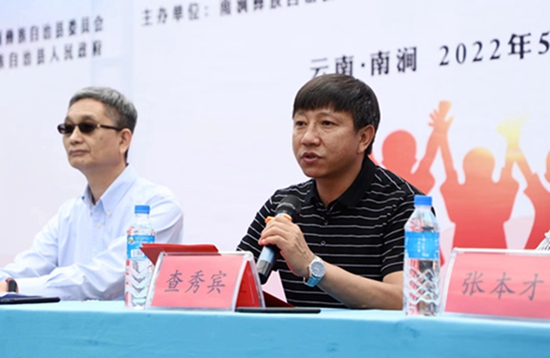 南澗縣教育體育局黨工委書記、局長查秀賓(右)致辭