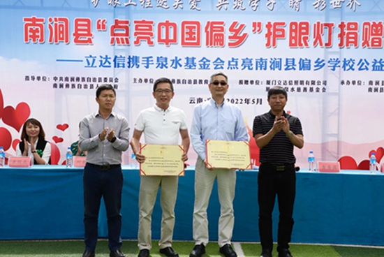 此次,立達信與泉水基金會為當(dāng)?shù)?4所鄉(xiāng)村學(xué)校捐贈了價值100萬元的護眼教室燈,這已是項目在當(dāng)?shù)氐牡谒呐栀洠塾?2所鄉(xiāng)村學(xué)校受益,捐贈價值超350萬元,基本做到了南澗縣除教學(xué)點以外的鄉(xiāng)村學(xué)校全覆蓋,也是“點亮中國偏鄉(xiāng)”在單個縣域捐贈量最大、捐贈比例最高的地區(qū)。