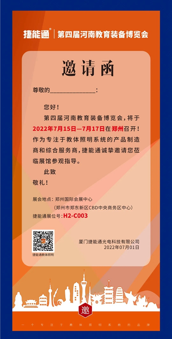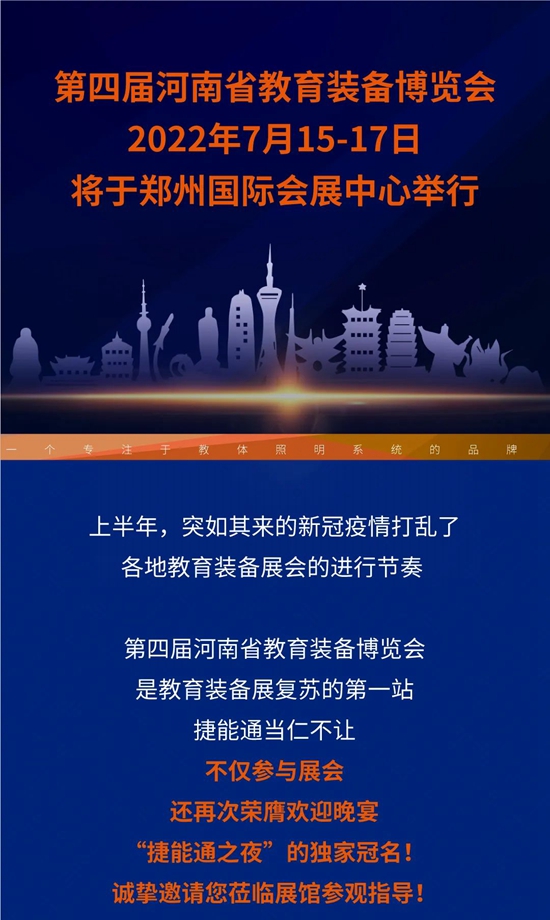 7月15日捷能通將亮相第四屆河南省教育裝備博覽會并獨家冠名歡迎晚宴!
