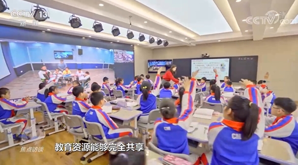 通過搭建同步課堂,城里的學校和海島上的學校,遠隔海灣卻共聚一堂,雖身處兩個不同的物理空間,卻在互聯網下置身同一個課堂,高清沉浸、穩定流暢,每個學生都能參與課堂互動,隨時回答老師提問。