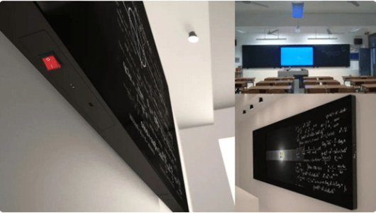 2017年,第二代智慧黑板也問世了。在這一次的產(chǎn)品迭代中,歐帝開始把結(jié)構(gòu)列入了產(chǎn)品設(shè)計(jì)的核心需求之一,二代采用了翻轉(zhuǎn)結(jié)構(gòu),改變了黑板在教室中管理維護(hù)的效率。