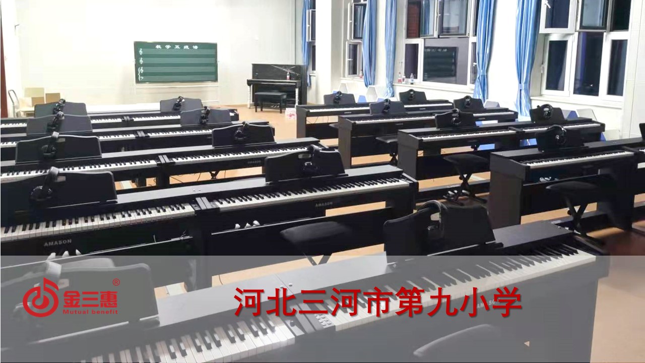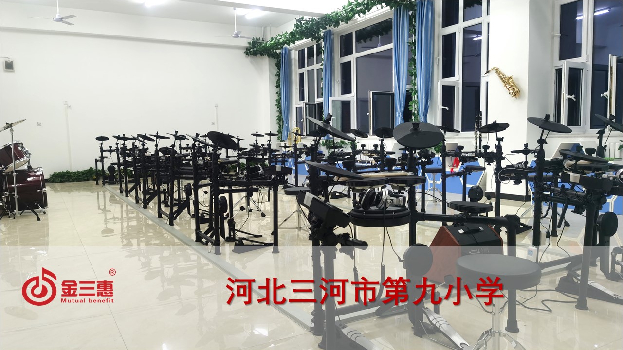 河北三河市第九小學的數字音樂電鋼琴教室、電鼓教室開始使用,本校數字化音樂教室由北京金三惠科技有限公司負責提供、安裝、培訓。