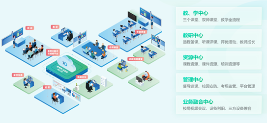 基于小魚易連云視頻平臺架構(gòu),為用戶提供教學(xué)管理、巡課督導(dǎo)、遠(yuǎn)程會議、協(xié)同辦公、家校互動、校企合作、平安校園、應(yīng)急指揮等全方位一體化管理應(yīng)用,提升教學(xué)及辦公管理效率,驅(qū)動區(qū)域教育數(shù)字化升級。