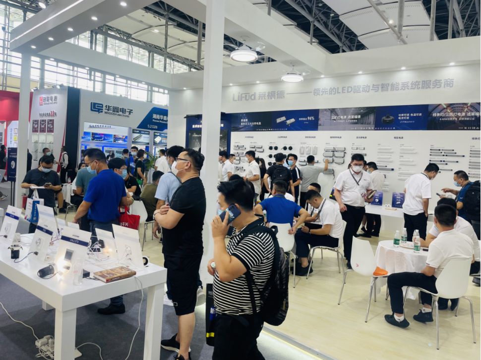此次展會,萊福德靜態展示了筒射燈/導軌燈、面板燈/教室燈、條形燈/三防燈燈具應用以及戶外照明、工業照明、景觀亮化、植物照明、顯示屏場景的調光非調光電源解決方案。