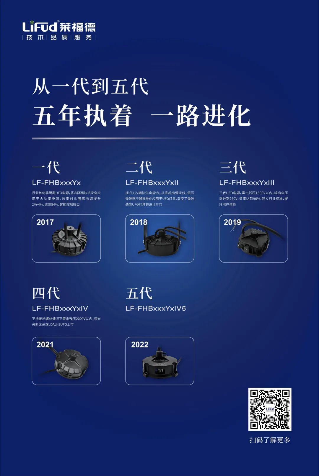 從打破隔離方案,首次開拓非隔離大功率UFO市場推出UFO一代,引領(lǐng)行業(yè)進(jìn)入非隔離UFO時代,到此次光亞展萊福德UFO 5代首次亮相,該款行業(yè)首創(chuàng)的集成調(diào)色溫、調(diào)功率、調(diào)電流“三調(diào)”功能非隔離UFO電源,再次引來行業(yè)眾多客戶圍觀。