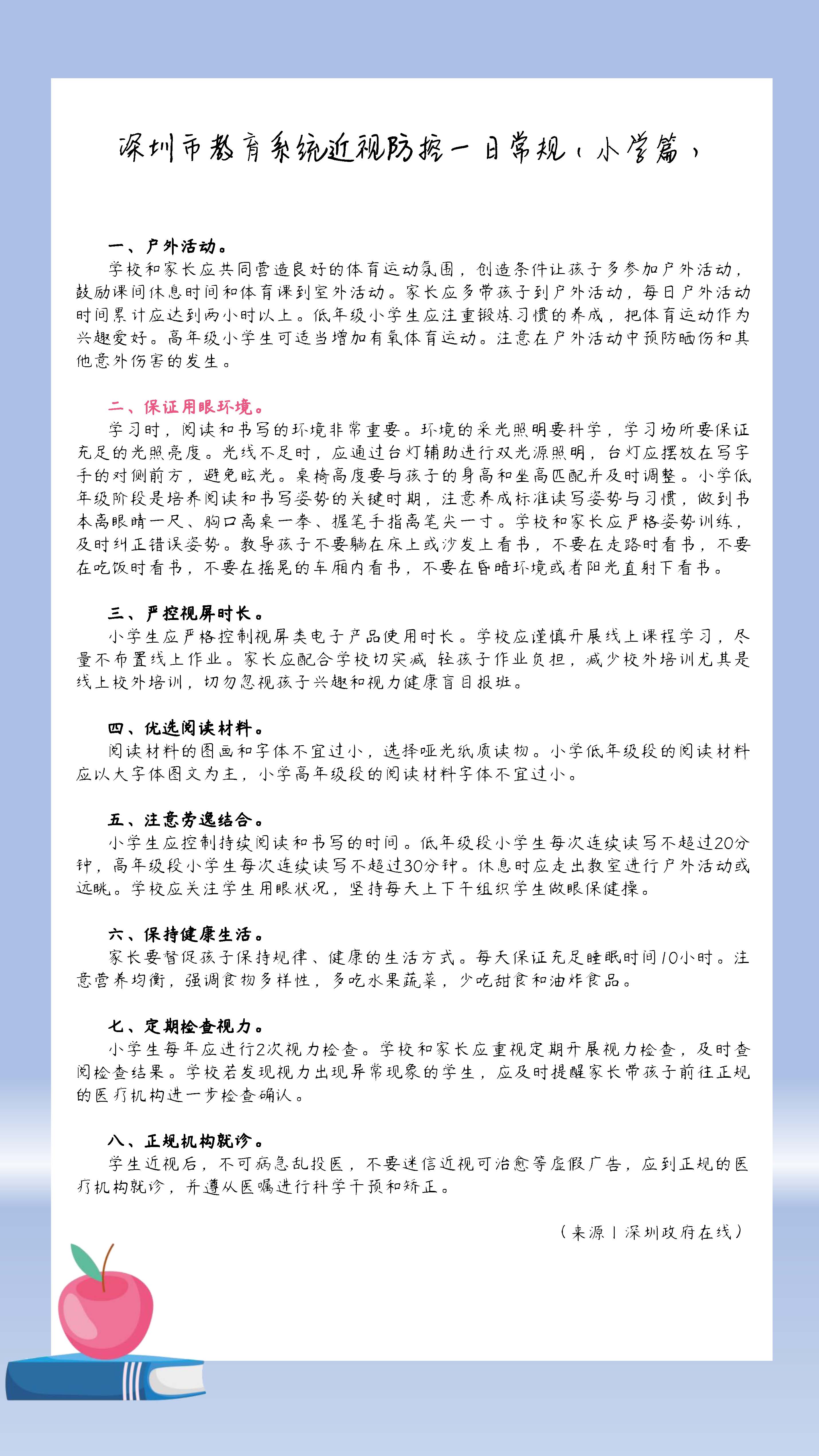 深圳市教育系統(tǒng)近視防控一日常規(guī)(小學(xué)篇)