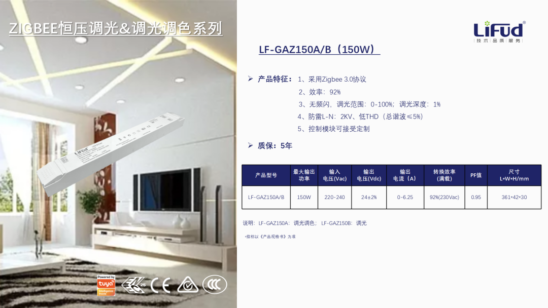在家居照明小區域場景的應用調光控制,可選用無線調光系統,既可滿足調光的多樣性,又比有線調光系統安裝更加便捷。如萊福德無線Zigbee & 藍牙電源,擁有調光、調光調色兩大系列,不僅可實現以上各種場景設置,還可聯動天貓、小度等語音音響,實現語音控制!