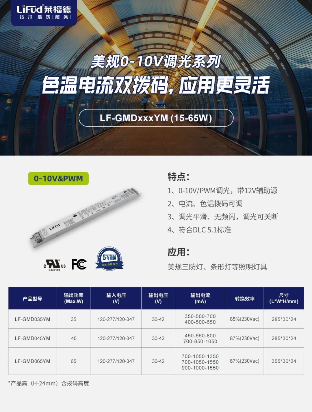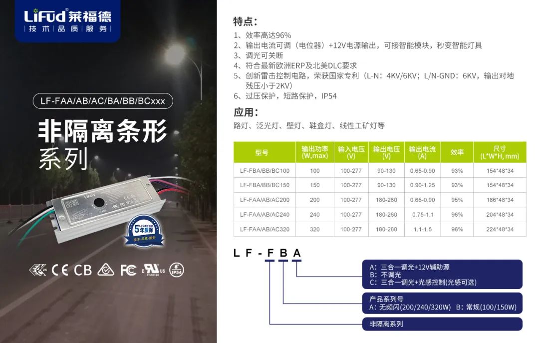 除常規寬壓,2022年萊福德針對高壓應用市場推出120-347Vac輸入非隔離UFO,為客戶提供更多應用選擇。