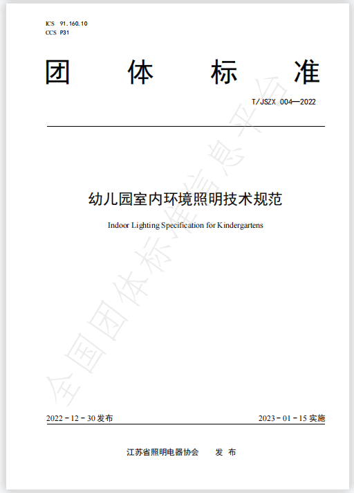 由江蘇省照明電器協會提出并歸口的團體標準《幼兒園室內環境照明技術規范》經立項、起草、征求意見、技術審查等標準編制流程,于2022年12月30日正式發布,自2023年1月15日實施。