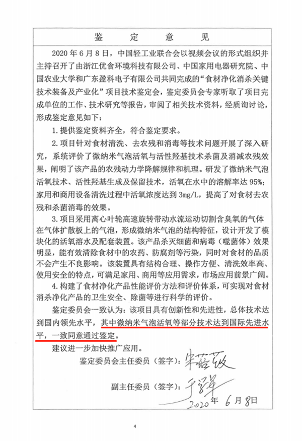 具有自主知識產權的“微納米氣泡活氧羥基”(UISH MOH+ Ⓡ)技術被中國輕工業聯合會鑒定為國際先進。