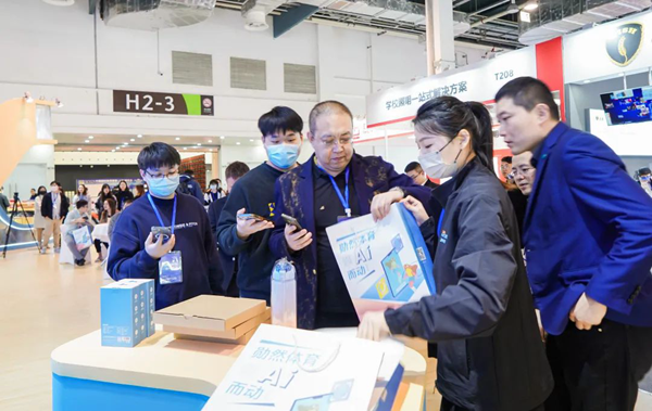 勛然體育此次創新設計展位區域,分區展示了智能跳繩、智慧屏、智能體測、智慧體育校園建設方案等在內的系列產品和方案,吸引了無數參展觀眾的目光。