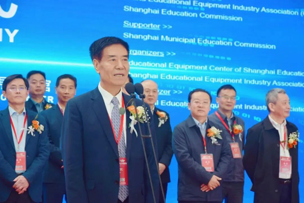 (教育部關心下一代工作委員會常務副主任、中國教育裝備行業協會專家委員會主任王富宣布2023中國國際教育裝備(上海)博覽會開幕)