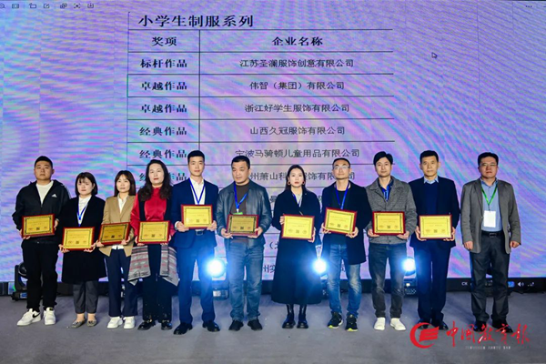 在中學制式系列中,我會會員企業廣州市龍格派服飾有限公司的作品被評為標桿作品;廣州櫻岫服飾有限公司的作品被評為卓越作品;廈門市育新工貿有限公司的作品被評為經典作品;廣州市東教服飾有限公司的作品被評為創新作品。