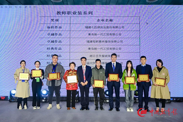 在教師職業裝系列中,我會會員企業廣東達思丹服裝有限公司的作品被評為創新作品。