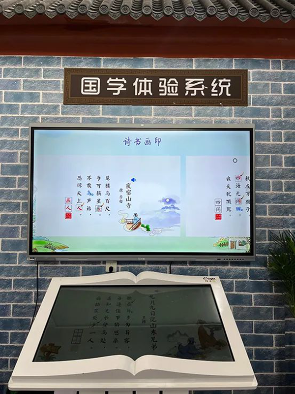 育靈童“國學智慧教室”是指通過技術搭建、資源整合和教研支持構建起來的,旨在滿足全國各地學校開展優秀傳統文化教育教學的綜合平臺。它以國學課程體系、國學教學系統、國學自主學習系統等資源為教學核心,利用多點觸控、云計算、增強現實、物聯和傳感技術等搭建智慧化的教學設備,通過環境氛圍和人文元素的布置打造具有濃郁傳統氛圍的教學環境,并通過與師資培訓平臺的連接支持教學研訓,從而激發師生的教學興趣,推動國學課堂教學生動、高效、有序開展。育靈童國學智慧教室以其系統的資源、高效的學習方式和趣味性的體驗設備榮獲中國教育裝備展示會金獎產品。同時,育靈童教育集團作為《數字化國學教室裝備規范》的團體標準制定單位而受到業內的高度好評!