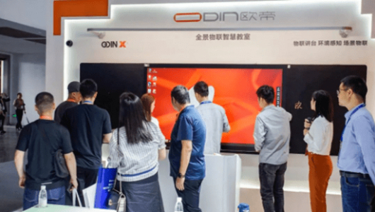 本屆教育裝備展歐帝推出了第六代智慧黑板Odin X、智能物聯雙升降講臺等新品和系列校園數字化應用創新場景,如以數字治理為核心的未來校園數字總部,以物聯網技術為核心的全景物聯智慧教室、以創新教學為核心的多屏研討型智慧教室、以互動和遠程教學為核心的互動型錄播教室……諸多數字化產品和方案場景引起了現場眾多參展嘉賓的濃厚興趣和頻頻認可。