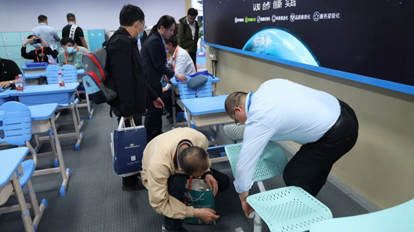 在“利生”強大品牌號召力的感染下,往來參展人員絡繹不絕,紛紛走進利生展位的多個展區參觀洽談,利生通過未來教室、學科實驗室3.0、教育照明等展區全方位詮釋了利生一以貫之、堅定不移服務教育,推動教育改革的宗旨。利生展位一時間門庭若市,座無虛席!