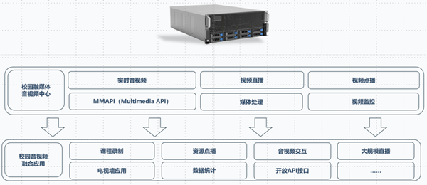 “校園融媒體資源中心”高度集中化設計,面向海量級的校園市場,降低成本,易于交付,以硬件穩定性作為基石,基于校園音視頻流媒體能力,融合學校日常教、學、管、教等多種場景,適應智慧校園發展趨勢。
