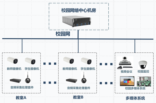 “校園融媒體資源中心”解決方案為教育用戶提供了各類校園多媒體應用的音視頻能力及融合管理調度平臺,在提供校本資源中心門戶、常態化課課錄、課堂類型分析、智能直播、線上推門聽課、觀摩督導等多媒體應用功能場景的同時,更能通過系統開放的API接口與校園內各類需要多媒體應用的系統對接,提供音視頻服務及融合能力。