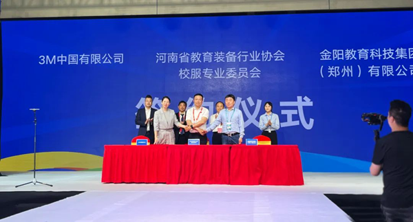5月12日,在鄭州國際會展中心舉辦的2023河南省教育裝備博覽會上,金陽教育科技集團、河南省教育裝備協會校服專委會分別與3M中國、YKK拉鏈順利進行“豫傳承 育未來-全天候三方合作協議”簽約儀式。河南省教育資源保障中心主任王德如、黨委書記王磊、副主任孫艷紅、河南省教育裝備協會會長林忠培、秘書長武強、3M消費品事業部服飾及紡織材料部亞太區總經理劉麗娜、上海吉田拉鏈有限公司中西部負責人徐皓、金陽教育科技有限公司董事長陳濤,以及來自各地市裝備中心的領導及專家們出席了此次簽約儀式。