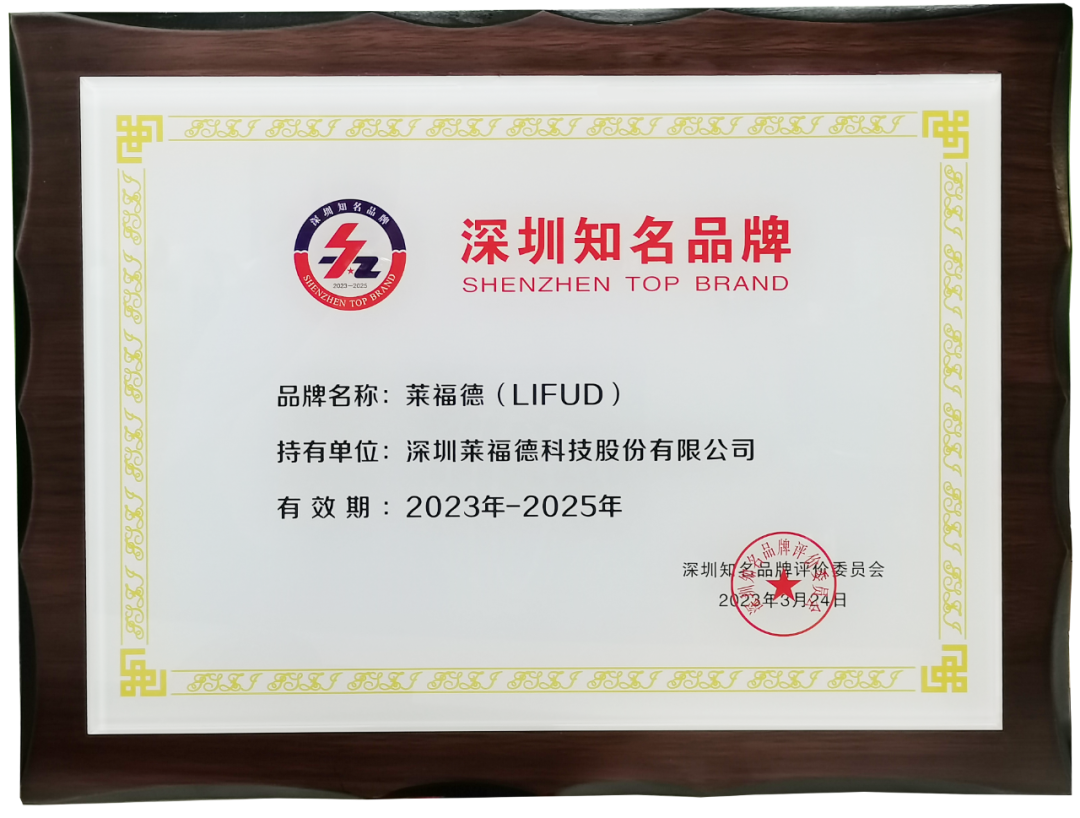 繼“專精特新”榮譽稱號之后,在第七屆深圳國際品牌周上,萊福德再次榮獲“深圳知名品牌”稱號,此次獲獎不僅是深圳工業總會對萊福德品牌核心價值——技術、品質、服務的肯定,更是市場行業對萊福德產品及發展的認可!