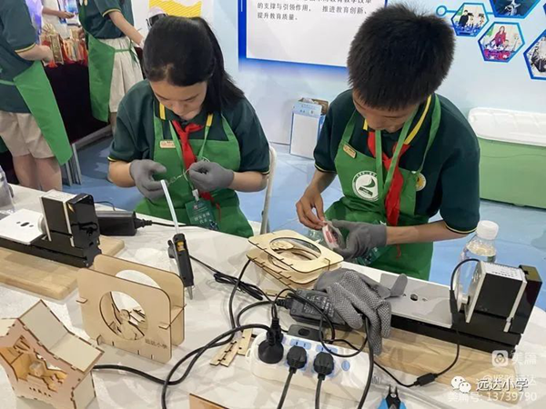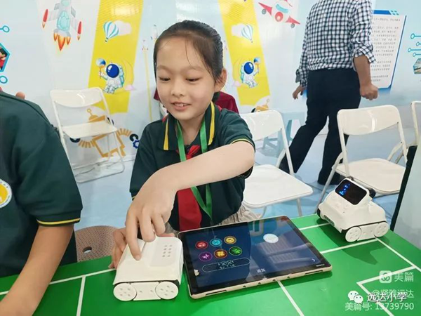 遠達小學以科技為主題,主要包括程小奔機器人、火星漫游者教育套裝和激光雕刻三大方面,展示了科學、工程、技術、數學、人工智能等跨學科知識的學習成果。