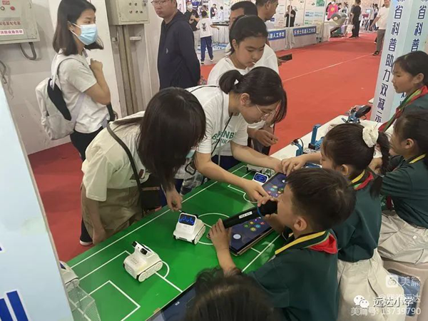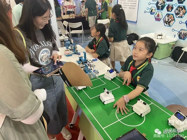 遠達小學致力于機器人教學,從三年級便進行機器人授課,學生通過編程操控程小奔機器人,使其完成了一場精彩絕倫的足球比賽。