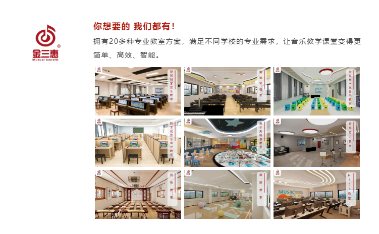 金三惠深耕音樂(lè)教育三十余年,專注為各類學(xué)校提供一站式音樂(lè)教室解決方案。始終堅(jiān)持從教育出發(fā),不斷升級(jí)數(shù)字音樂(lè)教室整體解決方案,專業(yè)化的服務(wù)態(tài)度助力教育高質(zhì)量發(fā)展。