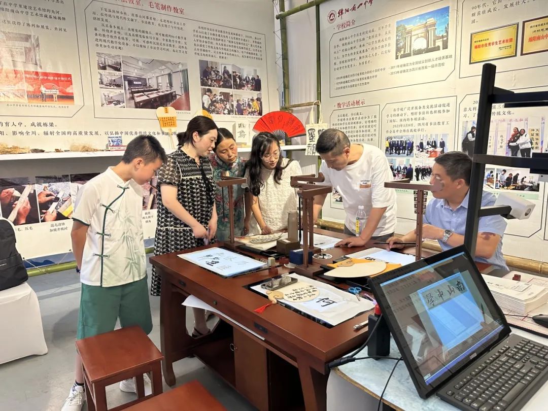 綿陽(yáng)南山中學(xué)將華文眾合智慧書法教室的部分設(shè)備展示在現(xiàn)場(chǎng),以高清臨摹體驗(yàn)、快速集字創(chuàng)作、交互式的教學(xué)模式,為活動(dòng)現(xiàn)場(chǎng)師生觀眾提供了書法學(xué)習(xí)新理念、新思路。