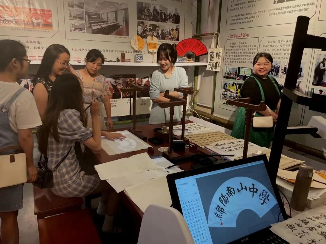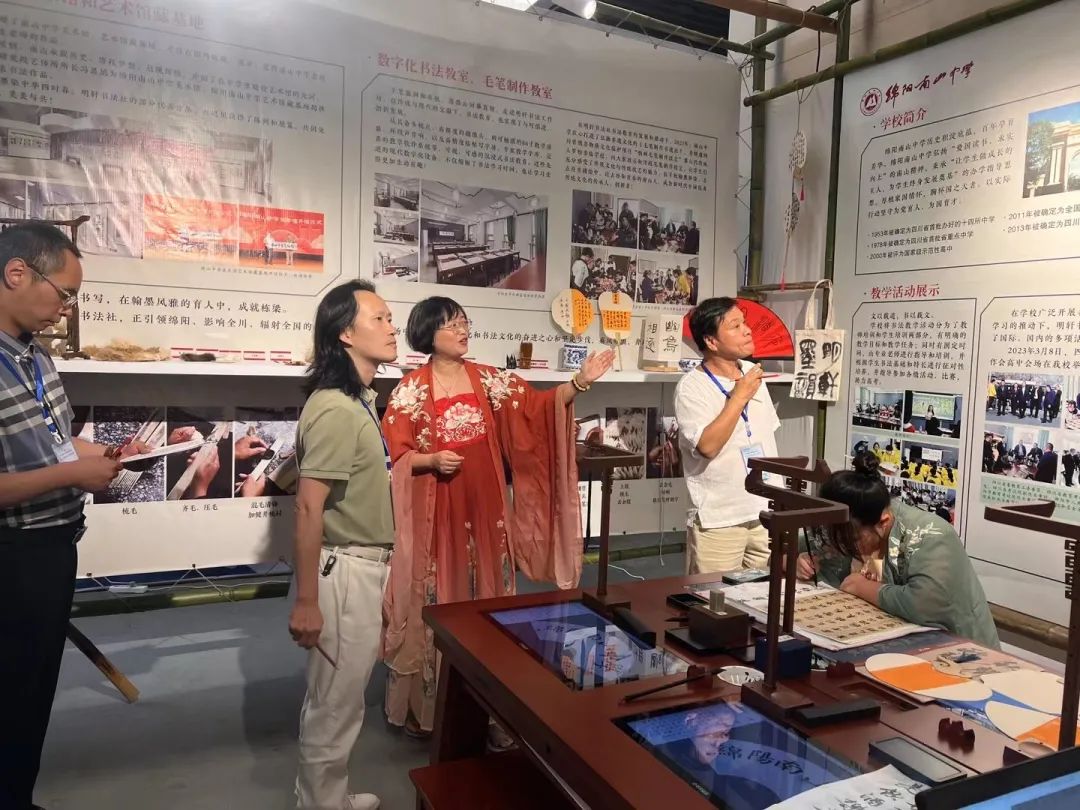 四川省教育科學(xué)研究院藝術(shù)與體育教育研究所所長(zhǎng)馮恩旭一行參觀指導(dǎo)綿陽(yáng)南山中學(xué)搭建的明軒書法坊,體驗(yàn)華文眾合交互式數(shù)字臨摹臺(tái),感受傳統(tǒng)和科技相融合的翰墨之美。