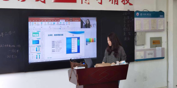 教師在家能通過電腦進行授課,實時互動教學的同時,可同步共享教學課件或外接高拍儀展示板書。當在學校授課時,老師使用云視頻硬件終端,在教室采用常規的授課模式,通過黑板板書或大屏教學課件與學生互動,并隨時共享PPT、電子白板、視頻流的錄制和直播內容。