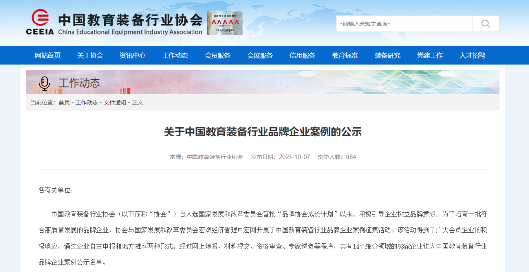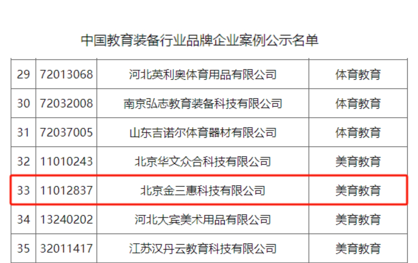 10月7日,中國教育裝備行業協會公示“中國教育裝備行業品牌企業案例公示名單”,北京金三惠成功入圍該名單。