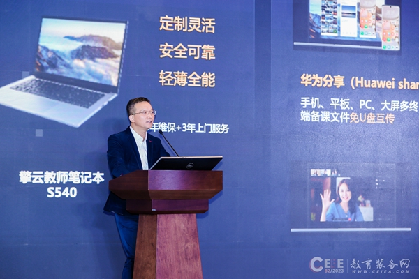 中國教育裝備行業(yè)協(xié)會副會長夏國明和華為終端業(yè)務大中華區(qū)副總裁、政企業(yè)務部部長賀磊分別為論壇致辭,中國教育裝備行業(yè)協(xié)會教育信息化裝備分會常務副理事長丁新主持論壇會議。