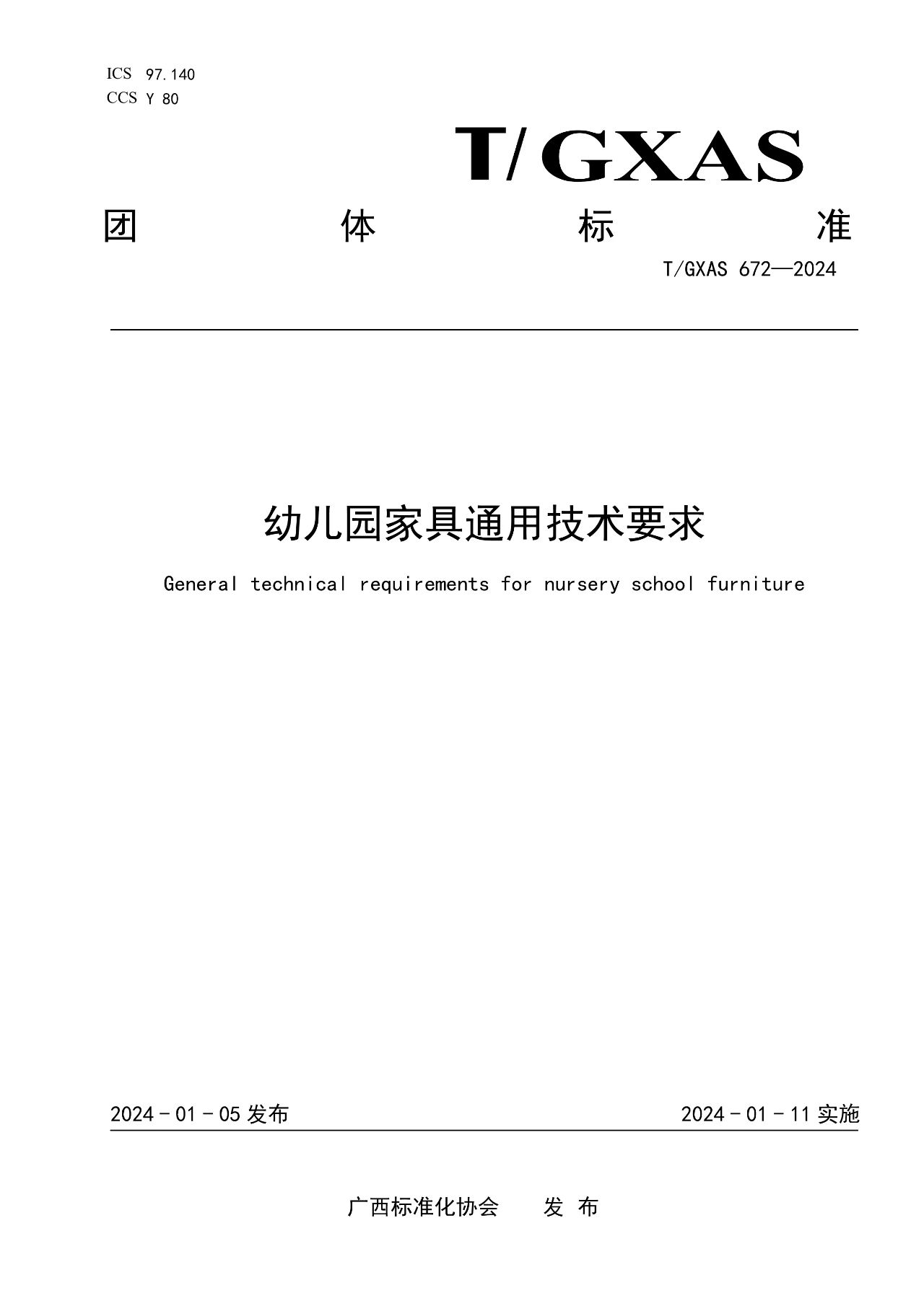 2024年1月12日,由廣西教育裝備行業協會牽頭,壯童教育設備(廣西)有限公司、廣西博童教育發展有限公司、南寧四軒科教辦公用品有限公司、廣西幼兒師范高等專科學校、廣西教育裝備行業協會、廣西托幼行業產教融合共同體、廣西壯族自治區衛生健康委員會幼兒園、廣西軍區幼兒園、南寧高新技術產業開發區梅沙幼兒園等單位共同起草的團體標準《幼兒園家具通用技術要求》正式發布。