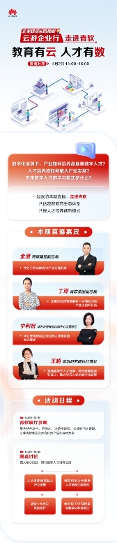 為進一步加快數字人才建設, 4月2日,華為云將攜手微吼、青軟集團,共同開啟以“教育有云 人才有數”為主題的企業快成長直播間云游企業行——“走進青軟”專場。