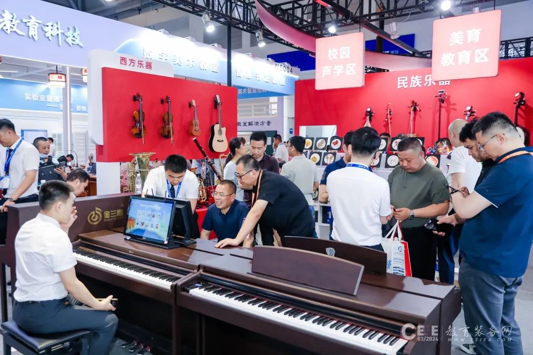 展會現場分為數字音樂展區、美育教育展區和校園聲學展區,以產品展示、軟件演示、工作人員講解、音樂活動等方式,緊跟國家政策,聚焦行業熱點,展示了助力教育數字化發展的創新理念和科技成果,為實現“同在藍天下,共享音樂夢”的夢想而努力奮斗。
