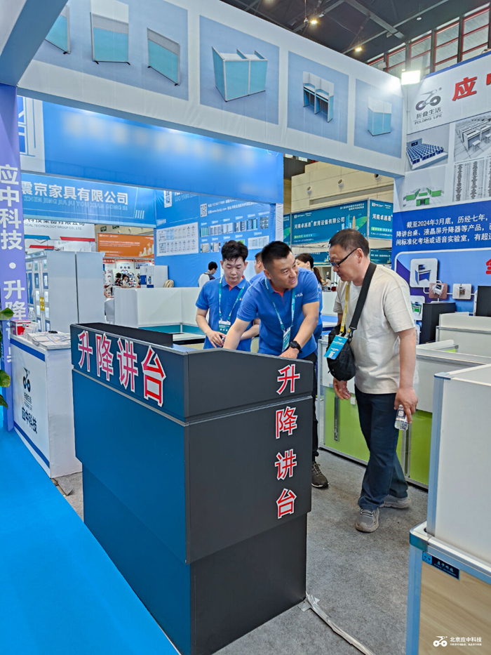 除上述兩款明星產(chǎn)品之外,本屆展會應(yīng)中科技重磅新品多功能升降講桌也同樣備受關(guān)注。