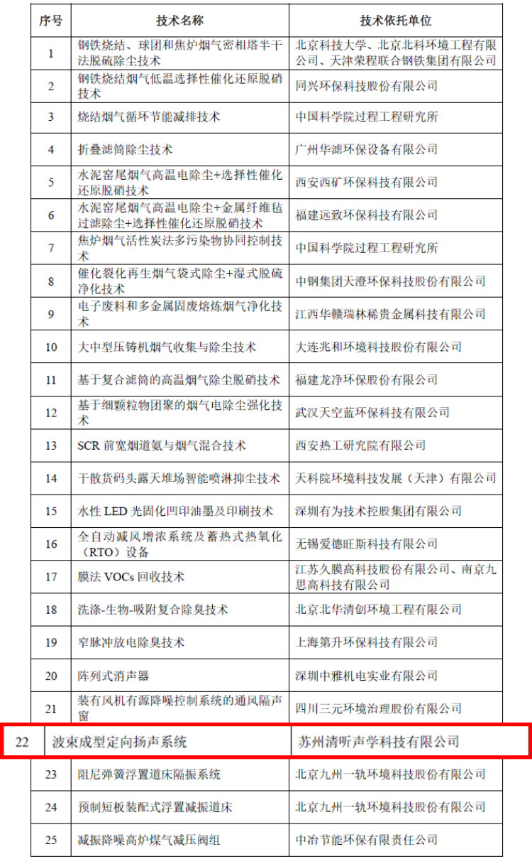 2021年《國家先進污染防治技術目錄(大氣污染防治、噪聲與振動控制領域)》技術依托單位名單