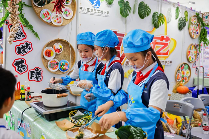 廣西中小學(xué)創(chuàng)新實(shí)驗(yàn)優(yōu)秀案例展示交流活動(dòng)連續(xù)7年與廣西教育裝備展同期舉辦。有來(lái)自14個(gè)地市的創(chuàng)新特色實(shí)驗(yàn)室優(yōu)秀案例,在7號(hào)展廳中,淮山棗泥膏、紫蘇炒釘螺、牛腩蘿卜煲等美食吸引眾多食客的目光,紛紛駐足品嘗。這些美食是玉林市玉州區(qū)第五實(shí)驗(yàn)小學(xué)惠秀廚藝勞動(dòng)教育實(shí)踐成果。據(jù)該校學(xué)生介紹,他們由老師帶領(lǐng)學(xué)做美食,不僅鍛煉了動(dòng)手能力,還了解了食物的屬性,也學(xué)會(huì)了更加珍惜食物。