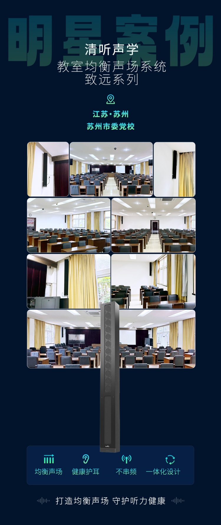 致遠系列不僅在技術(shù)有重大革新,在應用場景上擁有更廣泛的適用性,巧妙引進殿堂級音箱技術(shù),無縫融入各類教室、會議室、報告廳等大型室內(nèi)環(huán)境,為用戶提供卓越的音質(zhì)享受。