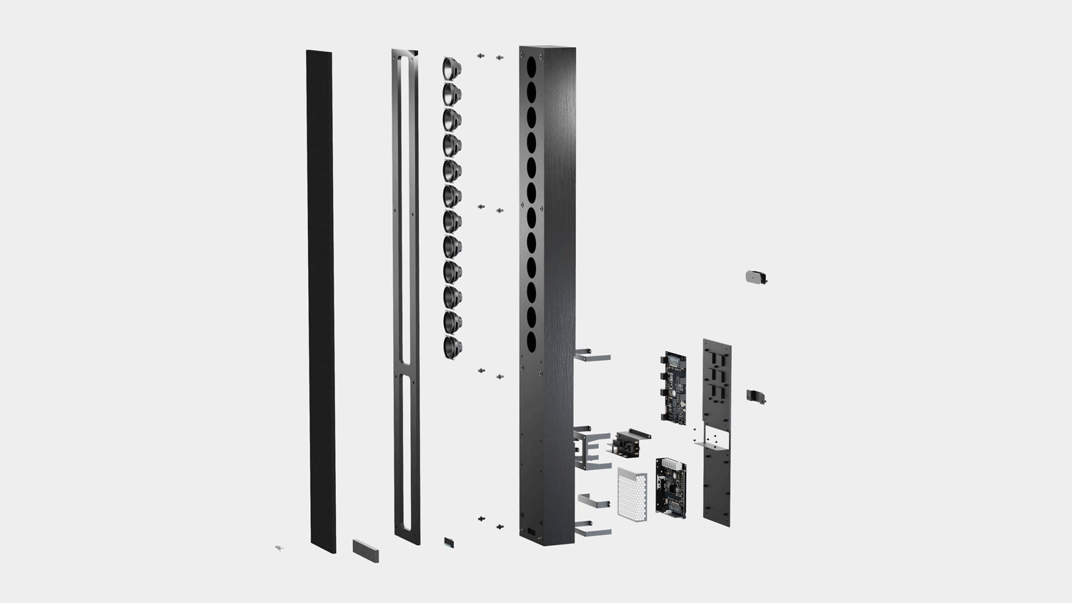 12個揚聲器單元采用陣列式設(shè)計,運用定向聲算法技術(shù),可根據(jù)需求上下調(diào)節(jié)聲音的播放角度,實現(xiàn)聲音在空間中的精準投放;另外內(nèi)置數(shù)字處理技術(shù)和實時音頻處理技術(shù),大大提升語音清晰度,使得會議室或報告廳內(nèi)的聲音呈現(xiàn)出無懈可擊的均衡狀態(tài),打破了傳統(tǒng)擴聲設(shè)備的局限性。